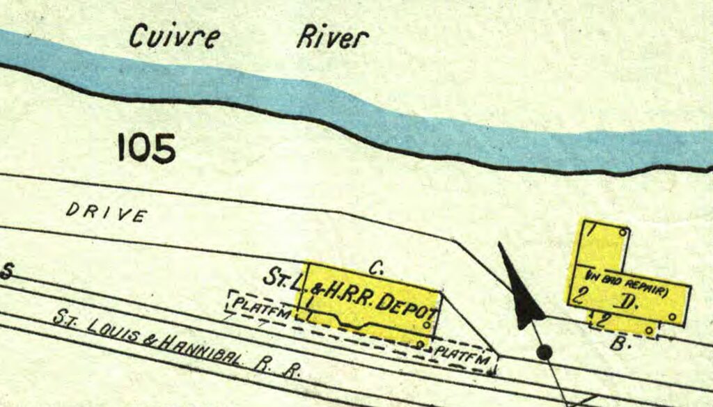 We’re not sure what year the hotel was built, but we do know it existed at the time the “short line” railroad was laid through town in the late 1800s joining Hannibal, to the north, with Gilmore, to the south. The hotel appears on a 1909 street map of Moscow Mills (Sanborn Map Company) – this is the earliest paper record of the hotel’s existence. In 1926, according to the oral history of our family, the hotel was owned by a doctor who was having trouble maintaining the property. A street map from 1919 provides evidence of this fact, as the hotel itself is labeled “in bad repair.”